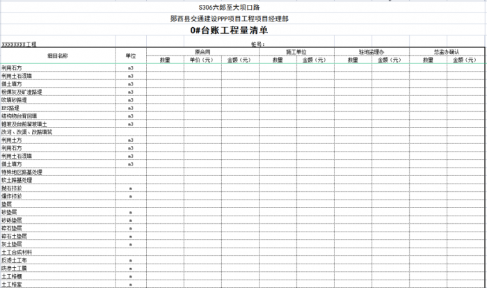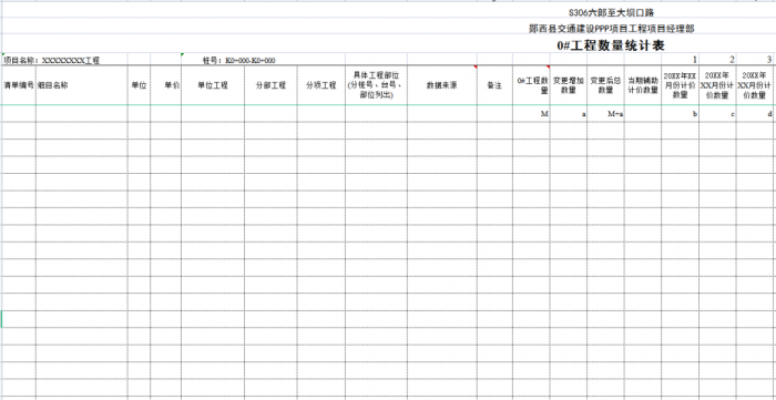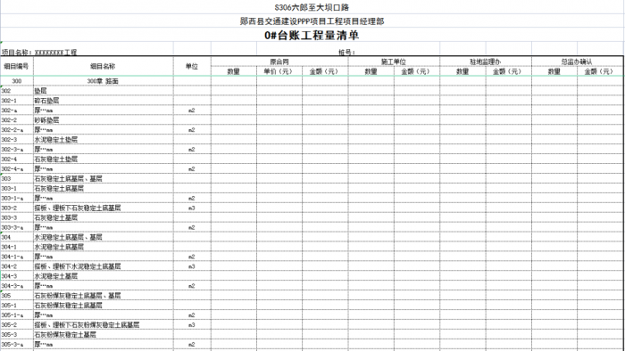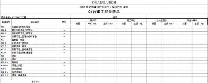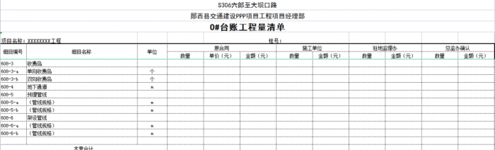 “0#”臺賬按單位、分部、分項工程劃分標準編制,可以將計量支付與質(zhì)量檢驗評定有機結(jié)合起來,這樣可以使質(zhì)檢、測量、實驗、計量等部門的內(nèi)業(yè)工作都在同一個規(guī)則下進行,提高了整個項目(合同段)內(nèi)業(yè)管理的效率。